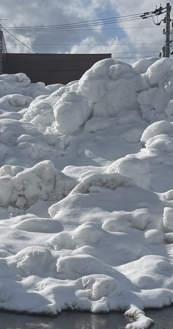 今週に入ってからは少し落ち着きましたが、敷地内や周辺には、除雪した雪がまだ山のように積み上がっています。